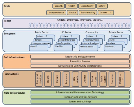 The task for the Smarter Cities movement should be to extend this thinking to envision the future of cities that are also shaped by emerging trends in digital technology and their effect on the wider economy and social systems. We won’t do that successfully by considering these subjects separately or in the abstract; we need to envision how they will collectively enable us to live and work from the smallest domestic scale to the largest city system.